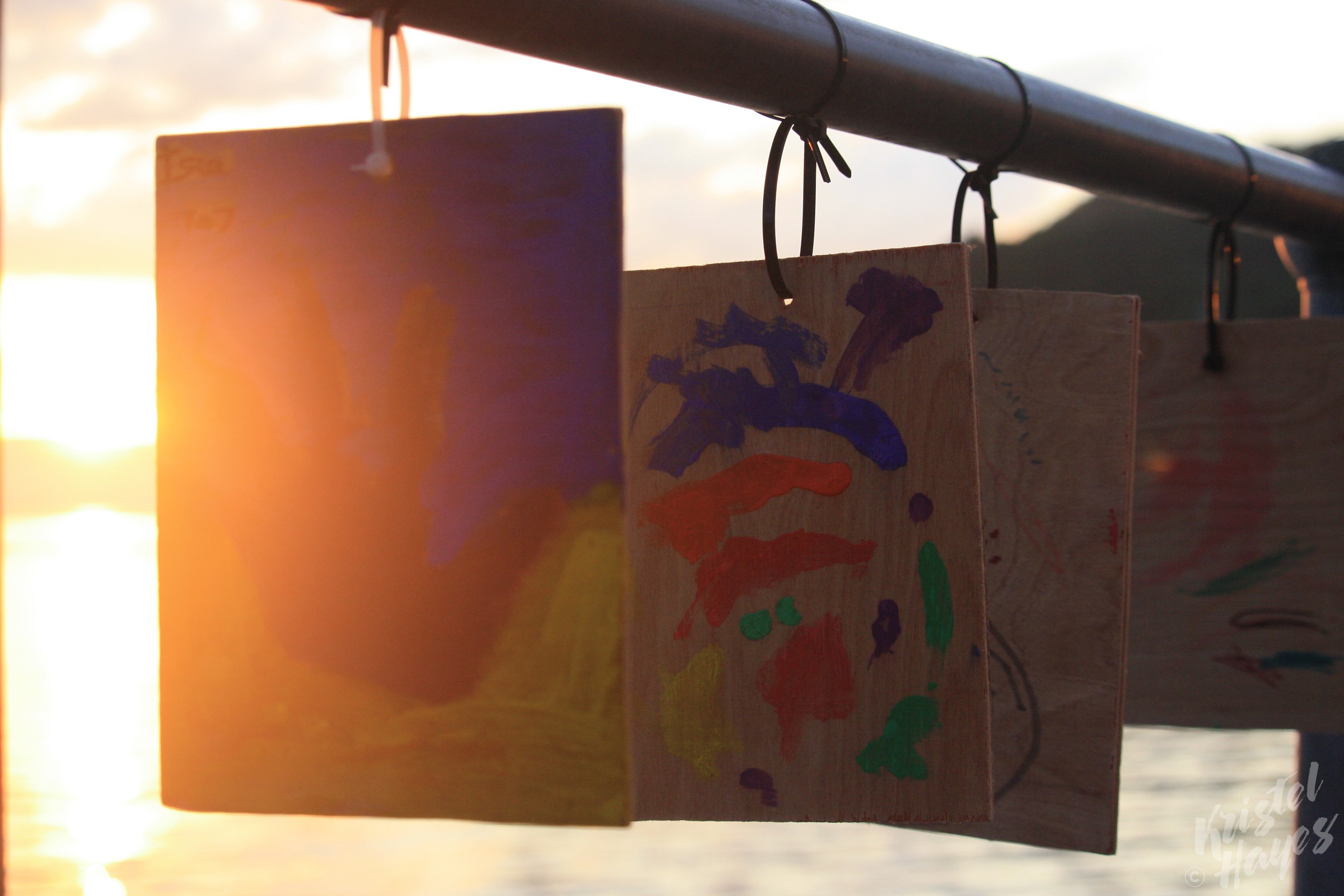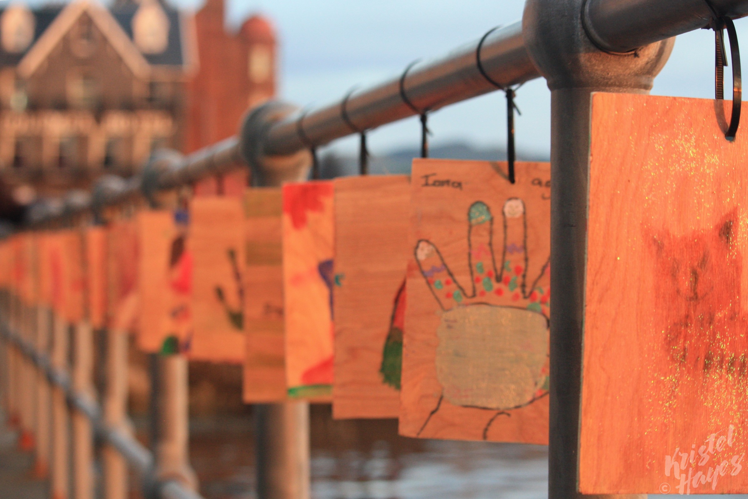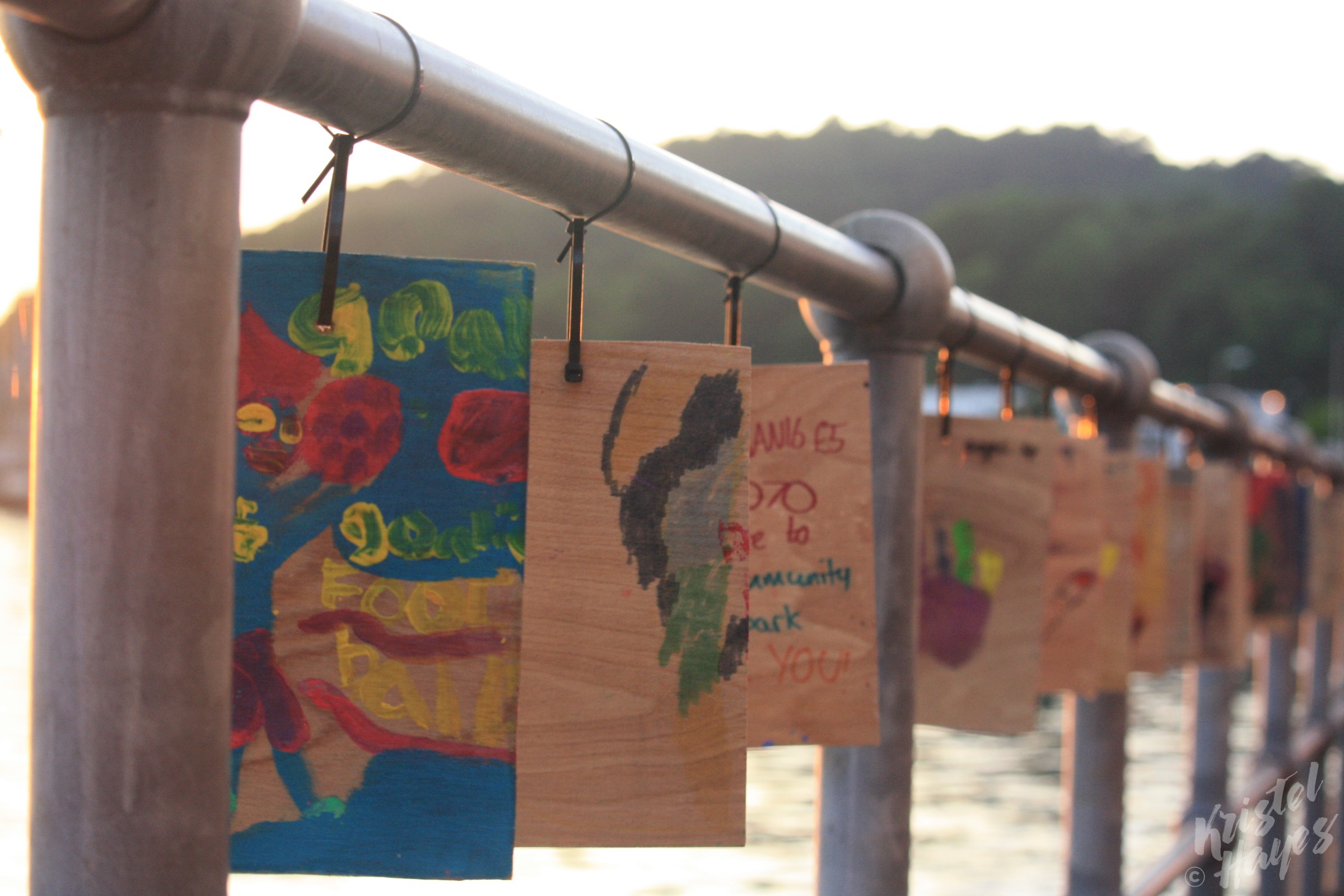 Along the waterfront, during our visit, was a fun display of artwork by the town’s children: wood planks featuring their hand prints, names and ages, and decorated uniquely by each. They stretched the entire length of the waterfront, and under the magical evening light, were fun to study, imagining the faces that went along with each of the tiny hand prints.